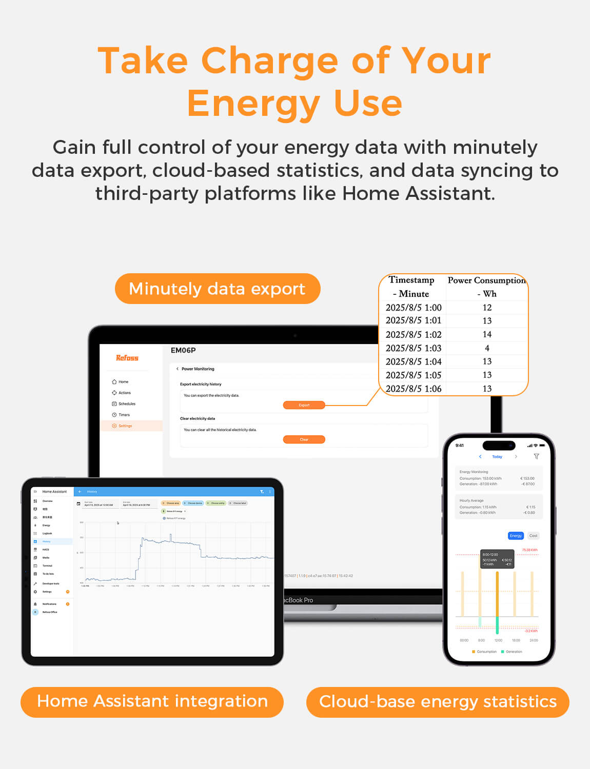 - Minute-Level Monitoring & Multi-Dimensional Data Views: Tracks energy consumption in real time at the minute level, and offers daily, weekly, monthly, and yearly visualizations. Includes free cloud storage with minute-, hourly-, and daily-level data uploads. Daily data is retained for up to 5 years with no subscription required.