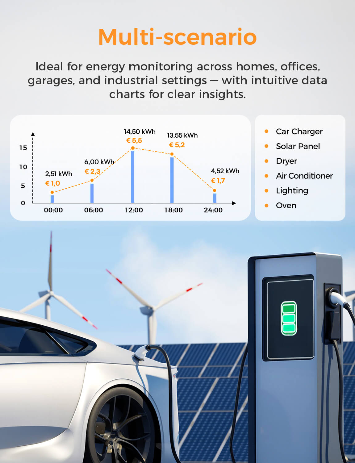 For example, when EM06P detects surplus solar energy at home, it can automatically turn on the EV Charger to consume the excess, reducing feed-in to the grid.