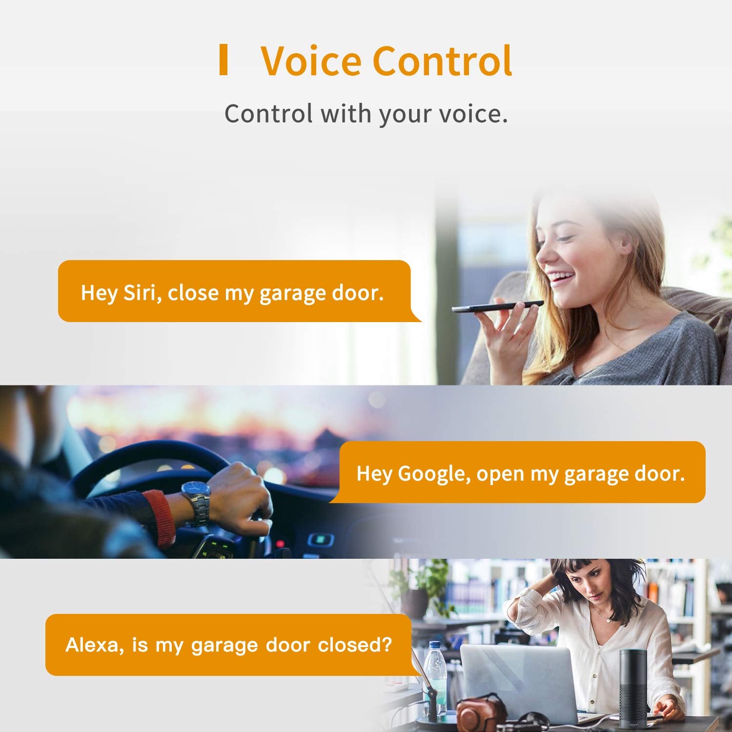 - Multiple Notification Modes: Stay alert by different notification modes, which remind you to close the garage door (overtime and overnight notifications) or keep you updated with the door status.