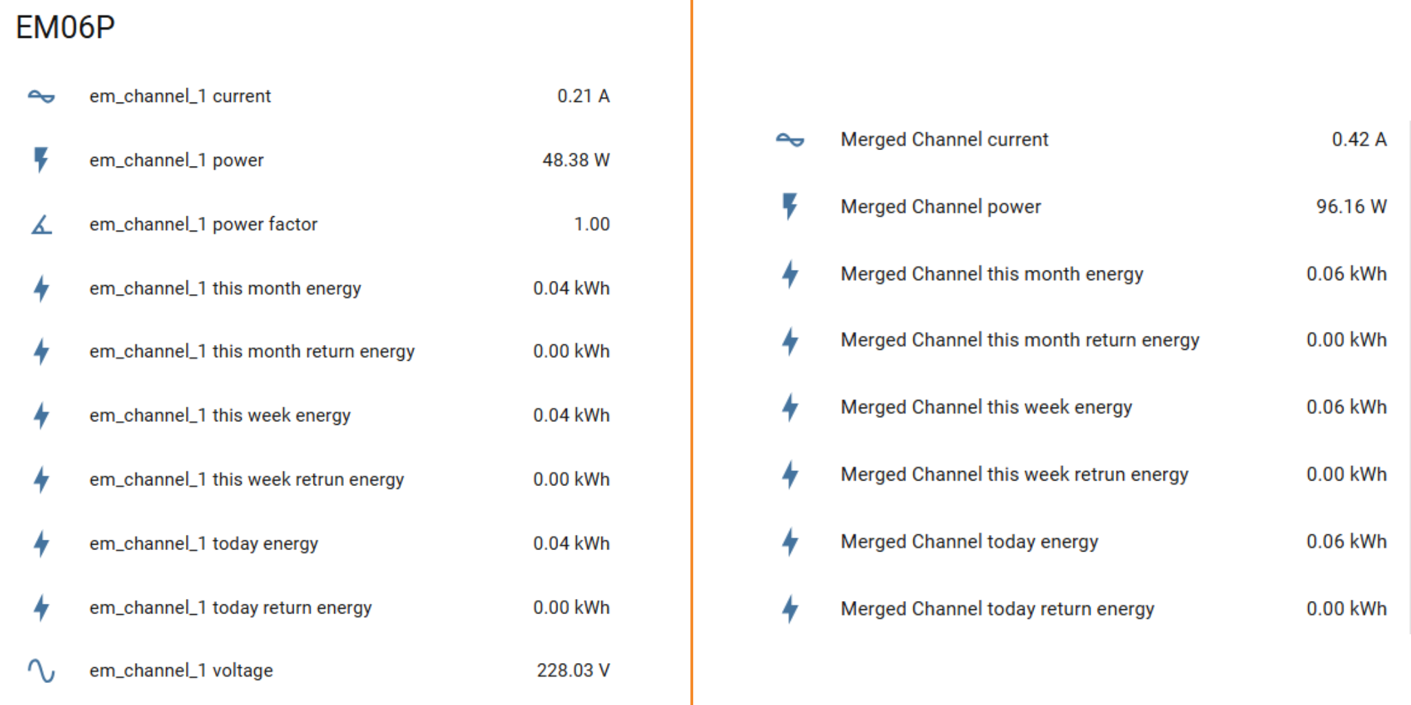 The EM06P's channel merge function allows users to combine data from multiple monitoring channels into a single virtual channel, displaying and managing it uniformly in Home Assistant.