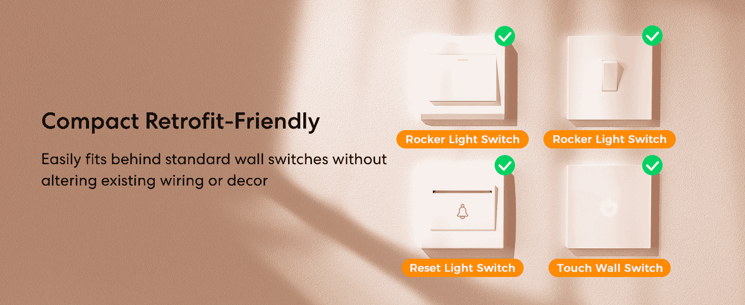 - Compact Retrofit-Friendly: Easily fits behind standard wall switches without altering existing wiring or aesthetics.