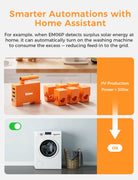 For example, when EM06P detects surplus solar energy at home, it can automatically turn on the washing machine to consume the excess - reducing feed-in to the grid.